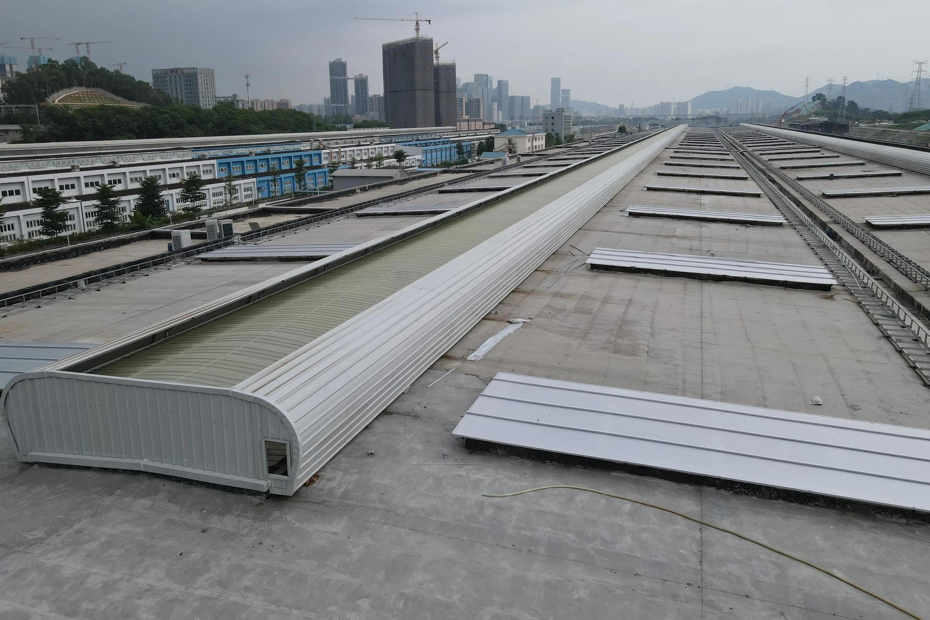 宜兴市弧线型通风气楼施工现场